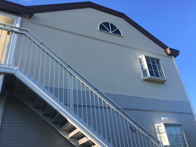 | こだわり | 傷んだサイデイング壁を外部用パテで模様を消さないように補修し、塗装を行いました。 補修も上手にでき、補修後も違和感なく仕上げることが出来ました。 また、建物が少し高台にあるためか風の影響で雨樋が破損していたので、そちらの修理も一緒に行わせていただきました。 心を込めて施工に携わらせていただきましたが、万が一、不具合がございましたらお気軽にご連絡くださいませ。 ありがとうございました。 |