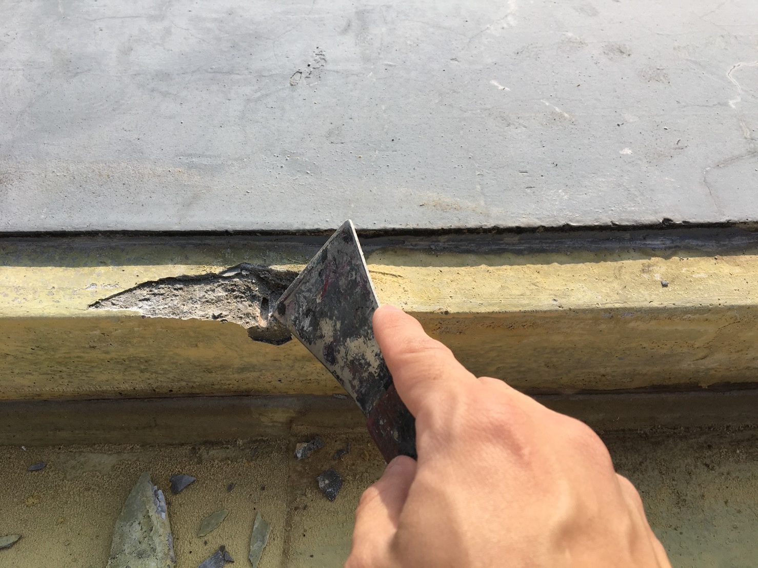 現地調査を行ったときに、防水塗膜の下に水が溜まっており、ウォーターベッドのように膨らんでいました。