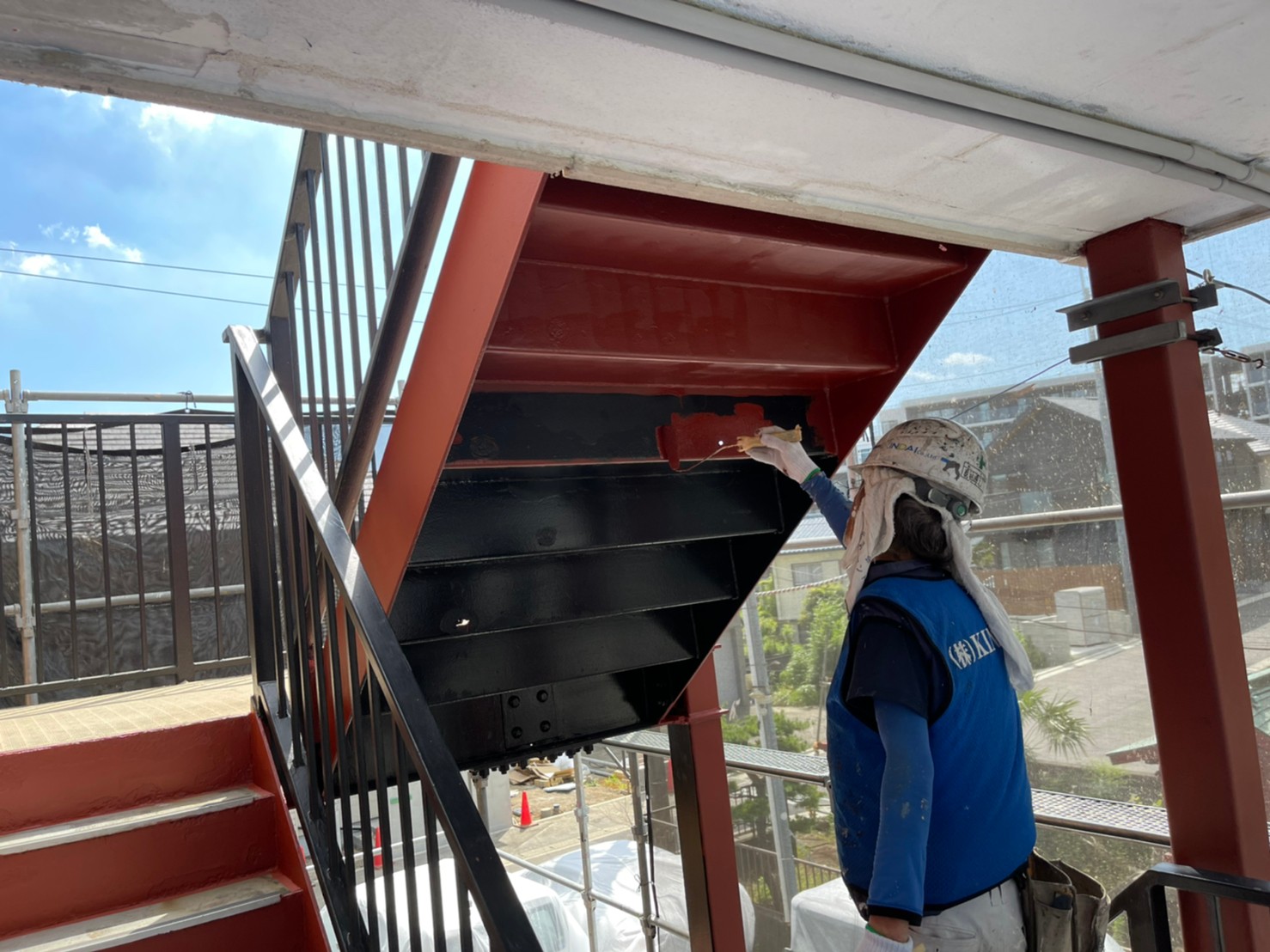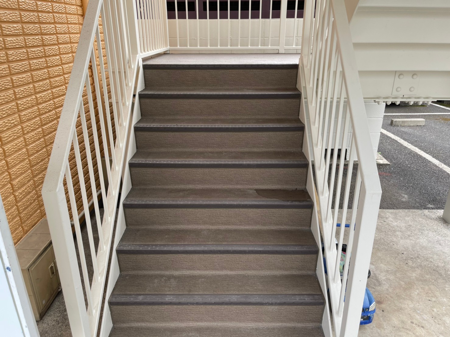 | こだわり | 外装材がALCパネルのため、長期紫外線に曝露され続けると劣化して気泡が目立つようになりスポンジのように雨水を吸ってしまうことがあります。 今回使用した外壁の下塗り材は、エポキシ形の強固な塗膜を形成する下塗り材なので目立つ気泡を埋めてくれます。 しっかりと塗膜でコーティングすることにより、雨水の吸い込みや紫外線から建物を守り長期的に美観を保ち続けさせます。 防水は、雨漏りが発生していたところも含め巾木の下地が水分を吸ってしまってグズグズになっておりそのままでは施工できない状態でした。 出来るだけオーナー様へ負担の無いように現実的な改修の提案をさせて頂き、無事雨漏りも収めることが出来ました。 その他、不慮の転倒事故を防止するため、防滑性の優れた長尺シートの張り替えや階段通路を広くするための手摺の造作など居住者様が安心してお住まいになれる居住環境づくりに努めさせて頂きました。 |